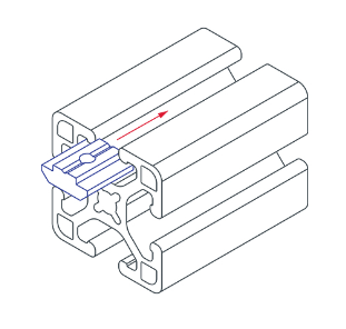 Piulița cu fantă în T cu auto-aliniere este o opțiune de fixare puternică care se încarcă de la capetele profilului. Proeminența de pe piulița în T o aliniază în fanta în T pentru o asamblare ușoară.